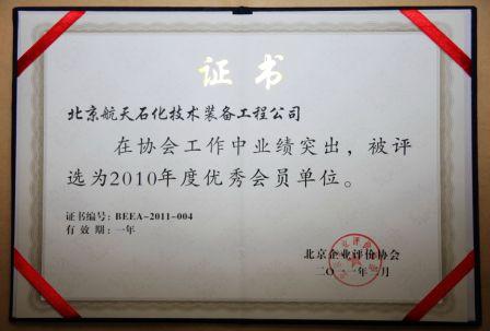 航天石化榮獲2010年度北京企業評價協會優秀會員