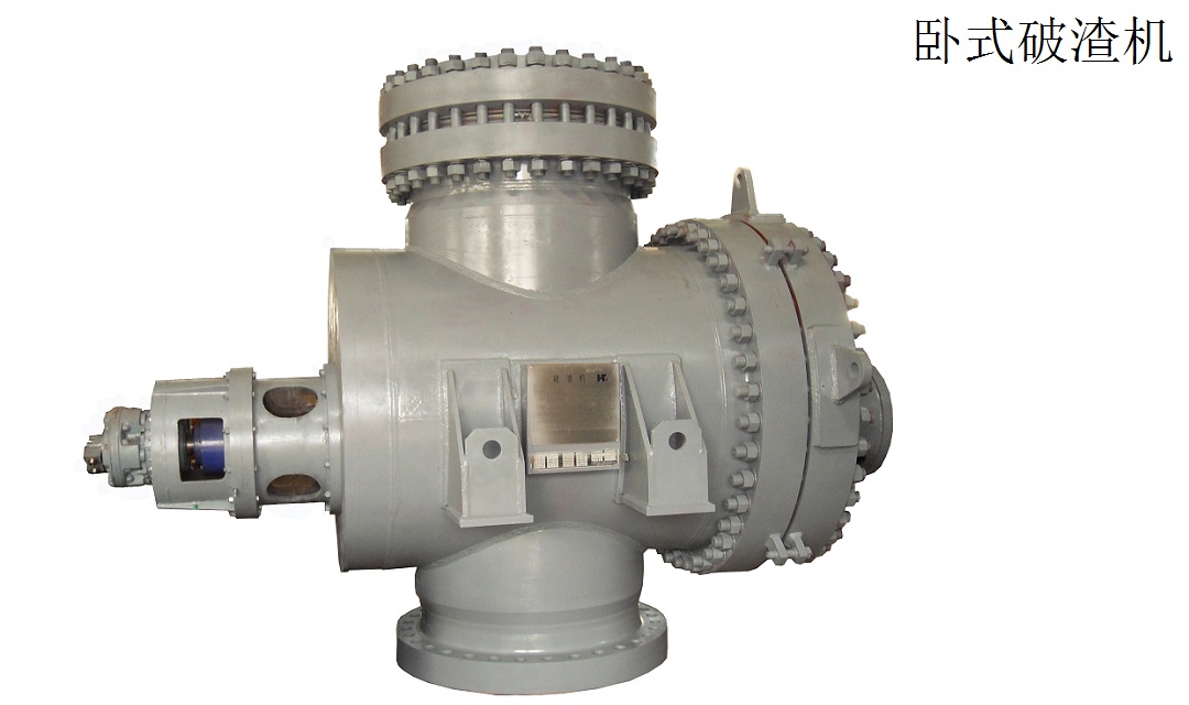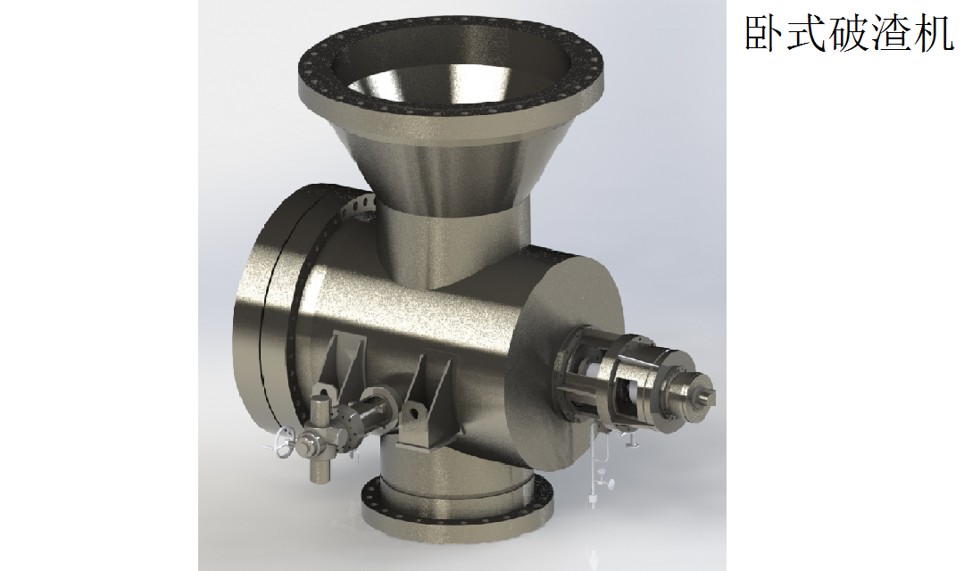 破渣機殼體為壓力容器,其核心部件動齒和靜齒偏心地安裝在殼體上,二者做相對運動,不斷將爐渣等固體進行旋轉(zhuǎn)破碎。在動齒與靜齒的上方設(shè)有導(dǎo)流板,以保證所有物料通過破碎系統(tǒng)并防止未破碎物聚集在動齒上方,同時配置液壓及電控系統(tǒng),可以實現(xiàn)破碎系統(tǒng)的日常運行、監(jiān)控、報警等多項功能。
